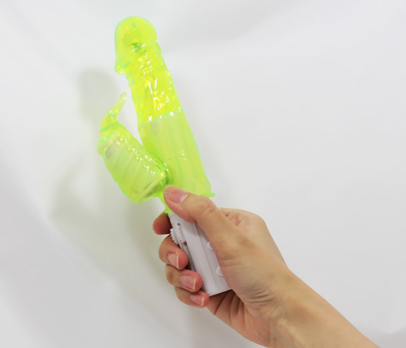2枚舌の子機が超刺激的!さらにリアルなカリ部分が、あなたのアソコをかき乱す!バイブ使用未経験な貴女でも、簡単に操作できるスイッチ式。