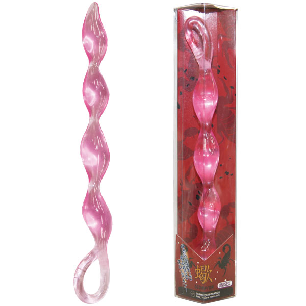 蠍の尻尾を思わせるアナルスティック!螺旋状になったクビレと膨み部分がしっかりとしているので、挿入時と抜き差しした際の刺激がアナルに直撃!更に先端の滑らかな尖りが腸壁を擽り、その鋭い快感はまさに「蠍」の名に相応しい中毒性があります。