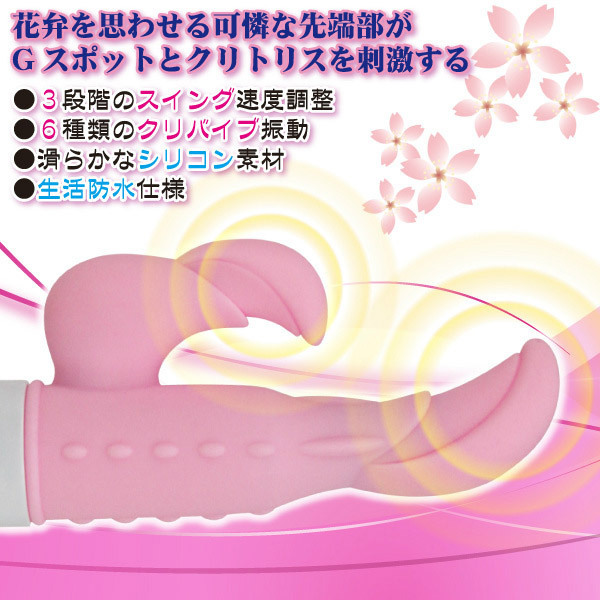 ●可愛らしいホワイト×ピンクカラー●挿入部分は安全なシリコン製●花片を思わせる上品かつキュートなヘッド部●クリイキ派の人には特に嬉しいクリバイブ付き●スイング:3段階調節可●クリバイブ:選べる6パターンの振動を搭載●個々に操作できるボタンスイッチ。