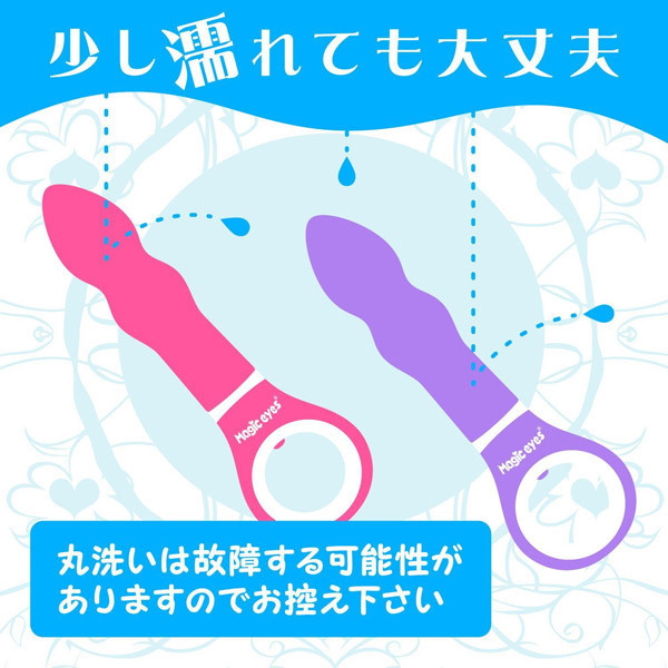 ●安心安全な高品質シリコン●扱い易いリング型グリップ●女性でも楽々な軽量ボディ●先端に二つの膨らみを配置●静音性抜群の振動機能搭載●選べる7種類の振動パターン●生活防水仕様(丸洗い不可)。