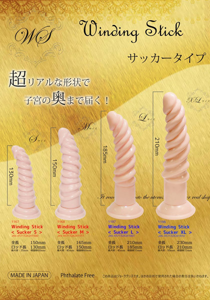 快感の渦に巻き込む肉感フォルム!凸凹ねじれ形状の吸盤付きディルド「ワインディングスティック サッカーL」。
