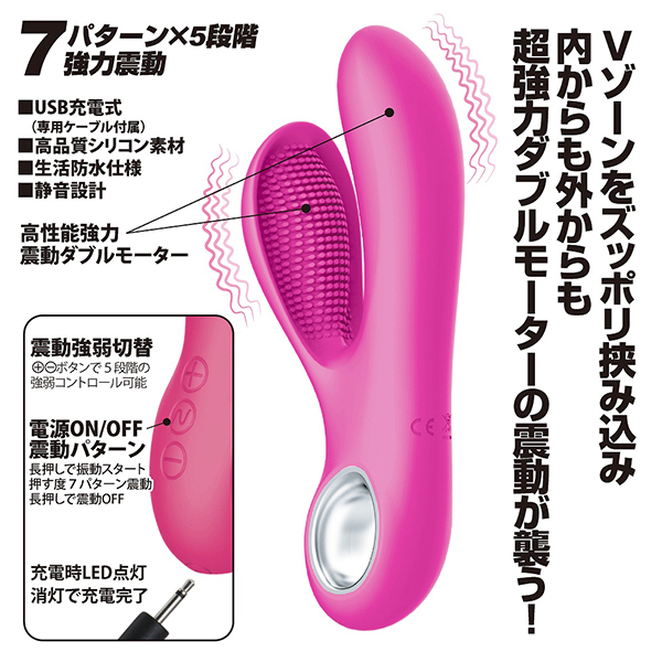素材には高品質のメディカルグレードシリコンを採用!無数の突起がついた子機とバイブが一体となり、V筋ゾーンを挟み込んで刺激を与えます。