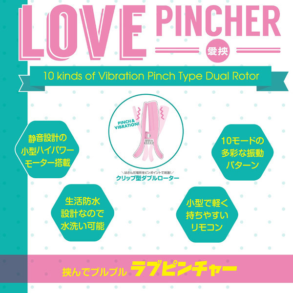 挟んでピンポイントでブルブル刺激!クリップ型ダブルローター「ラブピンチャー」。