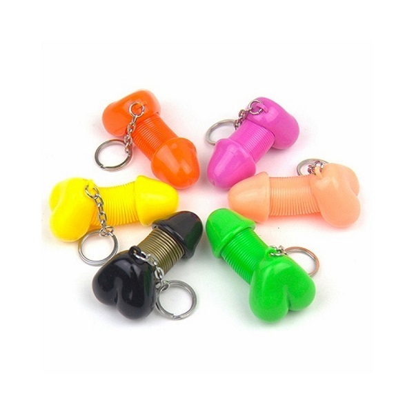 風俗店舗様などのノベルティグッズにも最適!ユニークな小さなペニス型のリングキーホルダーが登場しました♪サオ部分のスプリングを伸ばすと最大25cmまで伸びる面白グッズ。
