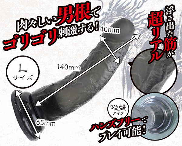 男を感じさせる極太ディルド!安心して使える日本製で、本体の挿入部はおよそ14cm×4cmのLサイズ。