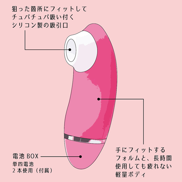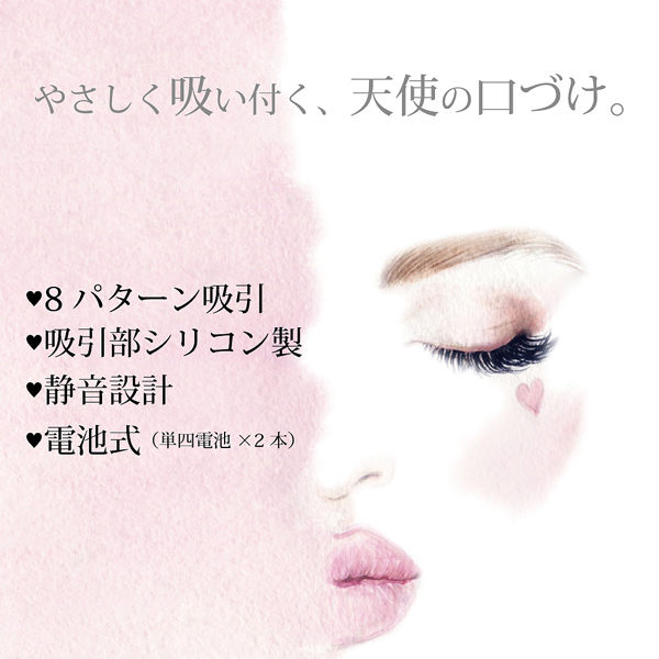 「優しく吸い付く、天使の口づけ」柔らかなシリコンがピンポイントに刺激する電池式の吸引ローター。