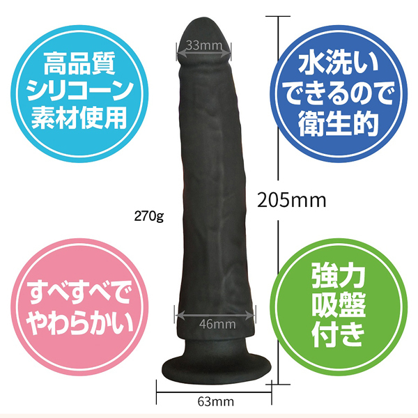 奥までしっかり届く!全長20.5cm、挿入幅3.3〜4.6cmと挿れごたえのあるアナル上級者向けの吸盤付きディルド。