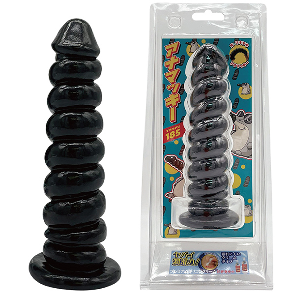 先端部分は亀頭形状で挿れやすく、段々が付いたツイスト形状ですのでズボズボと抜き差しするのが楽しくなる程よい刺激のアナルディルドです♪ミドルタイプの全長18.5cm。