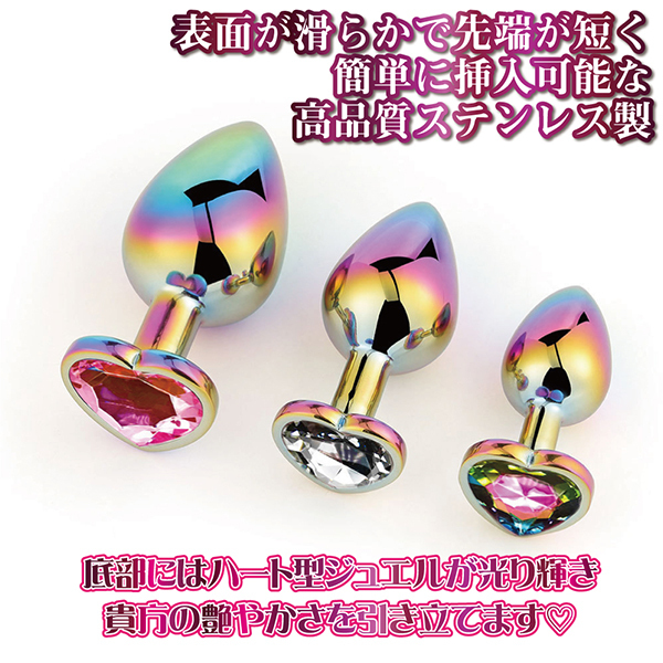 素材は高品質なステンレス製!表面が滑らかで先端が短く、簡単に挿入が楽しめるマルチカラーハートプラグハート形のアナルプラグです♪使用後は綺麗に洗浄ができ、衛生的に保管しておくことが可能!収納袋付きだから1つずつ収納できて、擦り傷なども防止できます。