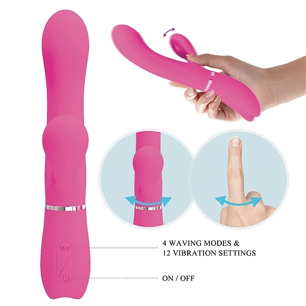指先が高速でCスポットを弾いているような子機の動きと、挿入部と連動した強力震動が性感帯をダイレクトに刺激する快感バイブレーター!サイドウェービングとバイブレーションは別操作可能。