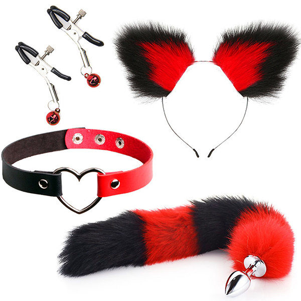 セット内容:耳カチューシャ、首輪、ニップルクリップ、しっぽアナルプラグ 原産国:中国 重量:本体135g