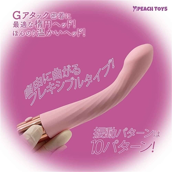 バイブは、スベスベ素材の自由に曲がるフレキシブルタイプ。