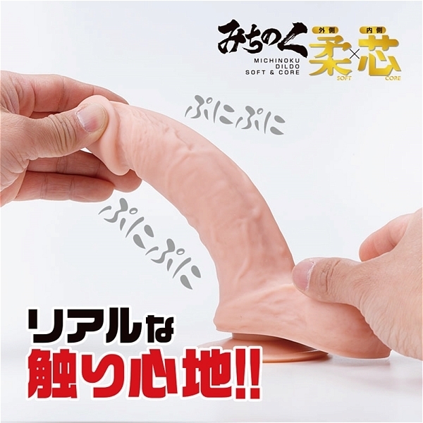 このみちのくディルド柔×芯の最大の特徴は「外は柔らかく、中は硬い」二重構造です。