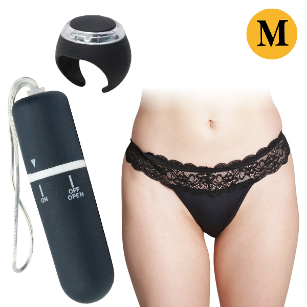 リング型リモコンのワイヤレスローターとポケット付きの黒レースTバックがセットになったお得なセット。