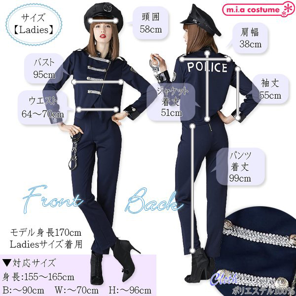 セット内容:帽子、ジャケット、パンツ、手錠 素材:ポリエステル100% モデル身長170cm