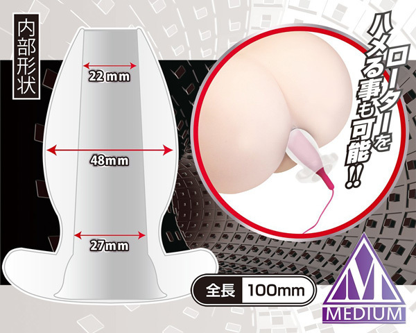 ●アナ×アナ・クリアハード●中級者向けMサイズ●程よい硬さの素材を採用●中の様子をじっくり観察できる貫通タイプ●本体(全長):10cm・最大径:4.8cm●内径:2.2cm〜2.7cm●ローション注入に最適●アソコにも挿入OK。