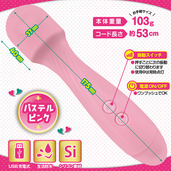可愛い見た目でビリビリ痺れる強力振動!女性でも持ちやすい重量103gの軽量型USB充電式電マ。