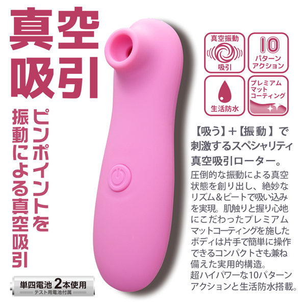 女性の敏感なポイントを真空吸引!バキューム×振動で刺激する電池式の吸引型ローター(ピンク)。