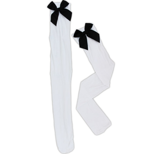 > 【420円★数量限定】リボン付きニーハイ 白×黒リボン<お一人様1点限り>