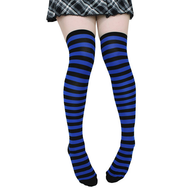 コスチュームのアクセントに!ブルー×ブラックのボーダー柄ニーハイ。