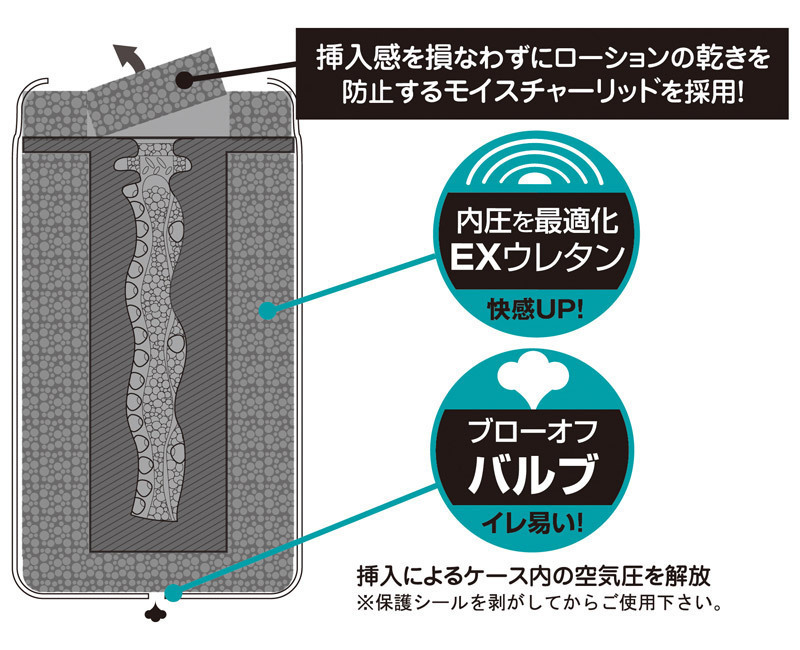 内部の圧力を最適にしてくれるEXウレタンを使用、波打つ形状が絡みつくようなねっとりフェラプレイを再現します。