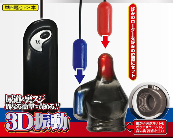 異なる振動を尿道と裏スジの2ヶ所同時に当てる事で、亀頭への刺激に立体感が加わり深みのある快感に!ローターの振動パターンは連動して変化する7段階振動を搭載。