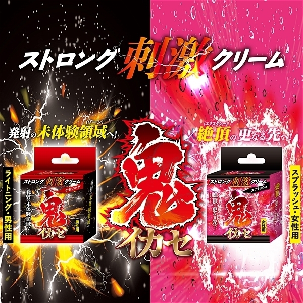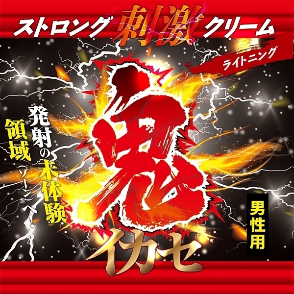 人気の鬼イカセシリーズより、ストロング刺激クリームが登場!!〜発射の未体験領域(ゾーン)へ!〜普通の刺激じゃ満足できないアナタへストロングな強烈刺激をお届け?使った瞬間、電撃(ライトニング)のようなビリヒリ刺激がアナタのチ○ポを容赦なく責めたてる?ライトニングスピードで発射の未体験領域(ゾーン)へアナタを導きます。
