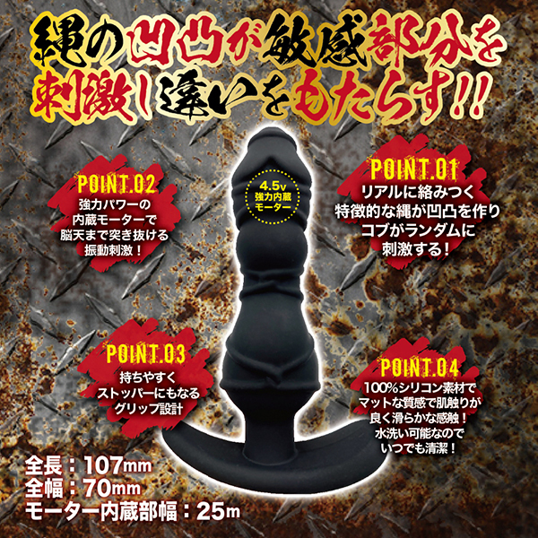 ペニスが緊縛されているような独特の形状の挿入シャフト、そして強弱を含んだ10種類のバイブレーションで穴の中を振動攻めしてくれる「