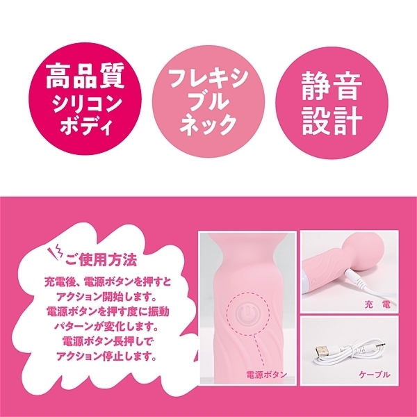 驚く程肌触りが滑らかな高品質シリコン素材にフレキシブルネックと静音なのにパワフルな高性能モーターを搭載したコンパクトサイズデンマです。
