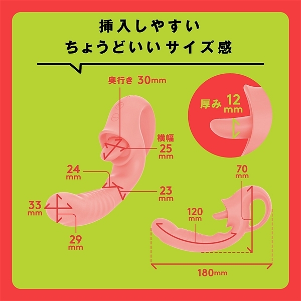挿入長120mm、最大径33MMで挿入しやすいちょうどいいサイズ感になっています。