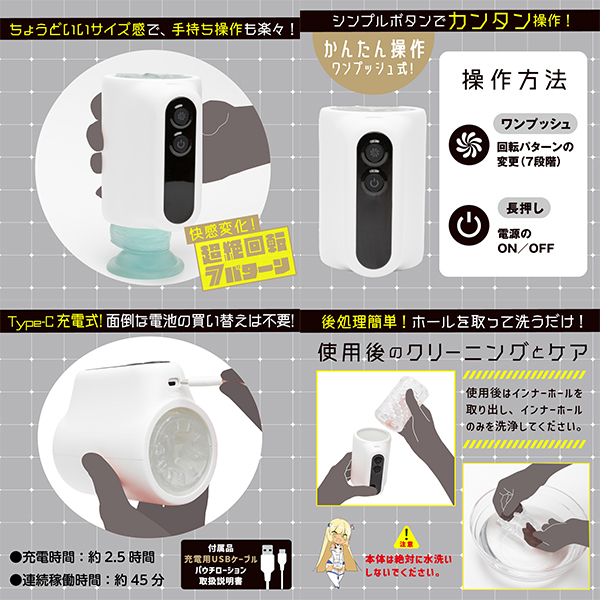 シンプルボタンでカンタン操作!ホールを取って洗うだけなので後処理簡単!重量約440Gのちょうどいいサイズ感で手持ち操作も楽々!インナーホールは高弾力でもっちりしている耐久性抜群の素材を使用。