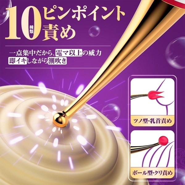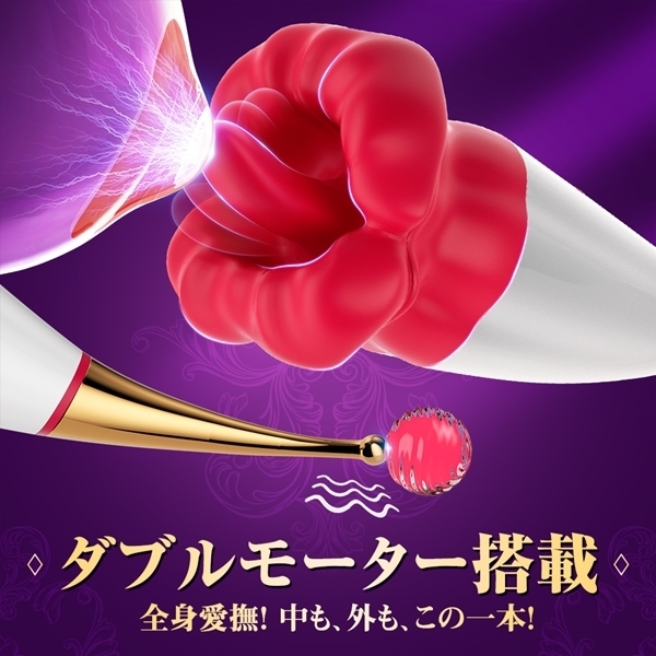 」は、クリ舐めとスティック型を融合させた究極のアイテム♪それぞれ個別操作が可能で、付属アタッチメントを使えば攻め方も自由自在!USB充電式で生活防水仕様なので、お手入れも簡単です♪10種類の舌舐めパターンと10種類の振動モードを搭載し、本物の触感を再現した柔らかい唇が、全身を舐め回すような絶頂体験を提供します。