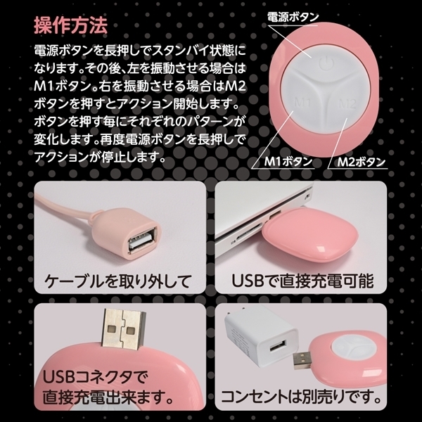 パッケージ:14.4×10.0×4.2cm 本体:ローター5.4×3.2×1.9cm リモコン5.5×5.5×1.6cm 重量:77g USB充電式
