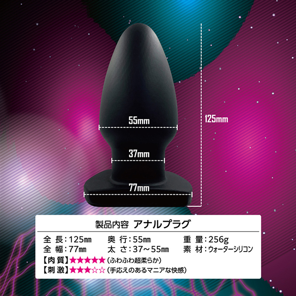 生々しい生体的な肉感弾力に人体や環境にも優しい安心材料♪サイズ的には太さ3.7〜5.5センチのストッパーということで、少し太めのレギュラーサイズのマニアックな快感が味わえます。